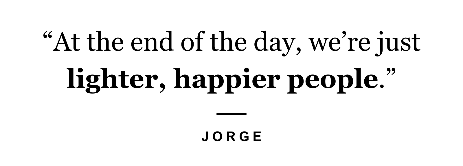 "At the end of the day, we're just lighter, happier people," Jorge added.